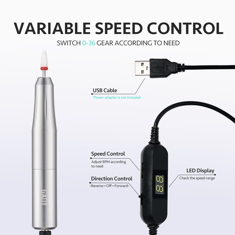 GAOY Electric Nail Drill, USB Electric Nail File for Acrylic and Gel Nails, Portable Efile with Nail Drill Bits, Manicure Pedicure Tools for Home Salon, Silver
