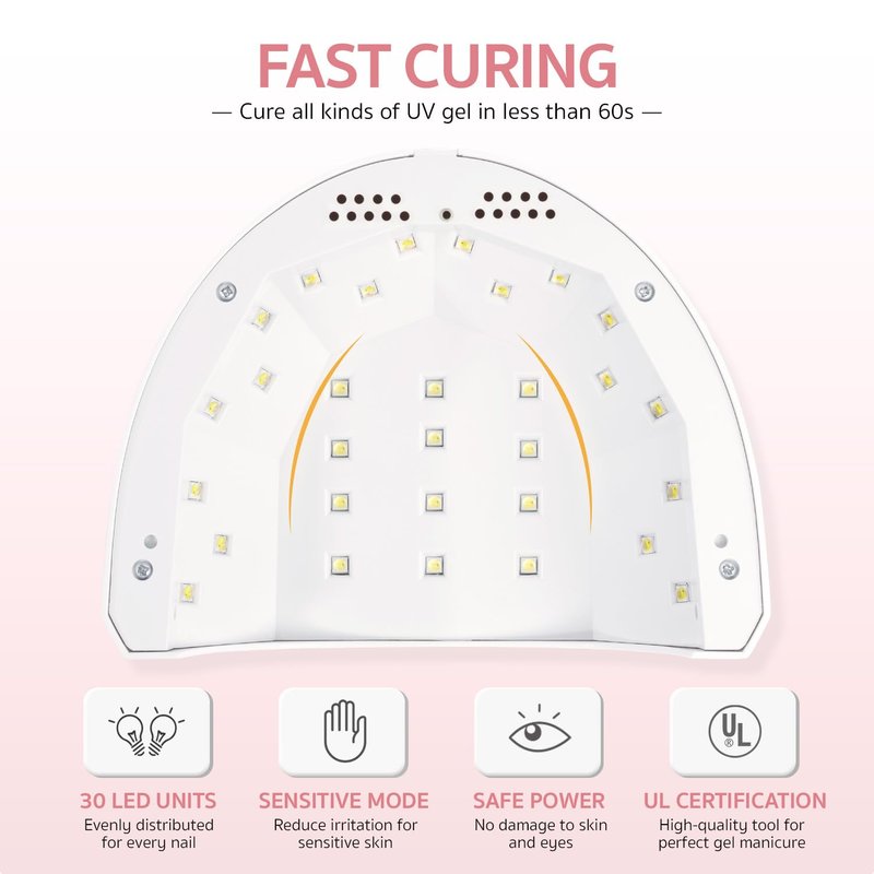 - Smart Sensor & Adjustable Timers: The built-in smart sensor activates the lamp automatically when your hand is placed inside, no manual operations needed. Choose from 8s, 30s, 60s, or the 120s automated setting for different curing needs