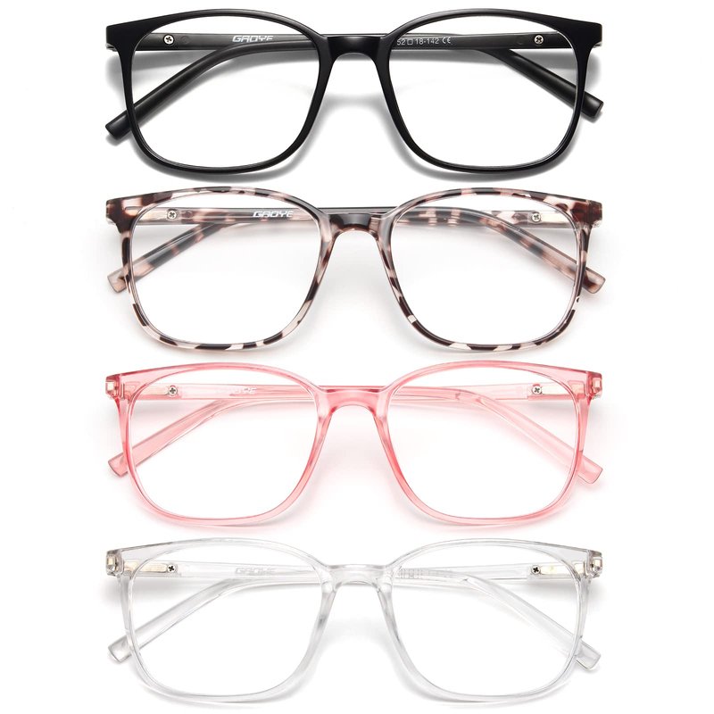Gaoye Blue Light Blocking Glasses Women/Men, Computer Gaming Fake Eyeglasses Anti UV Ray-Spring Hinge (4 Pack, Matte Black & Leopard & Pink & Transparent)