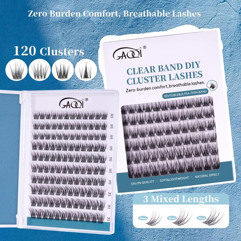 - ULTRA-THIN CLEAR BAND: GAQQI clear band lash clusters feature an ultra-thin, transparent band that blends seamlessly with your natural lashes for a more flawless look. With the super thin and soft invisible band, you will feel almost nothing when wearing them.