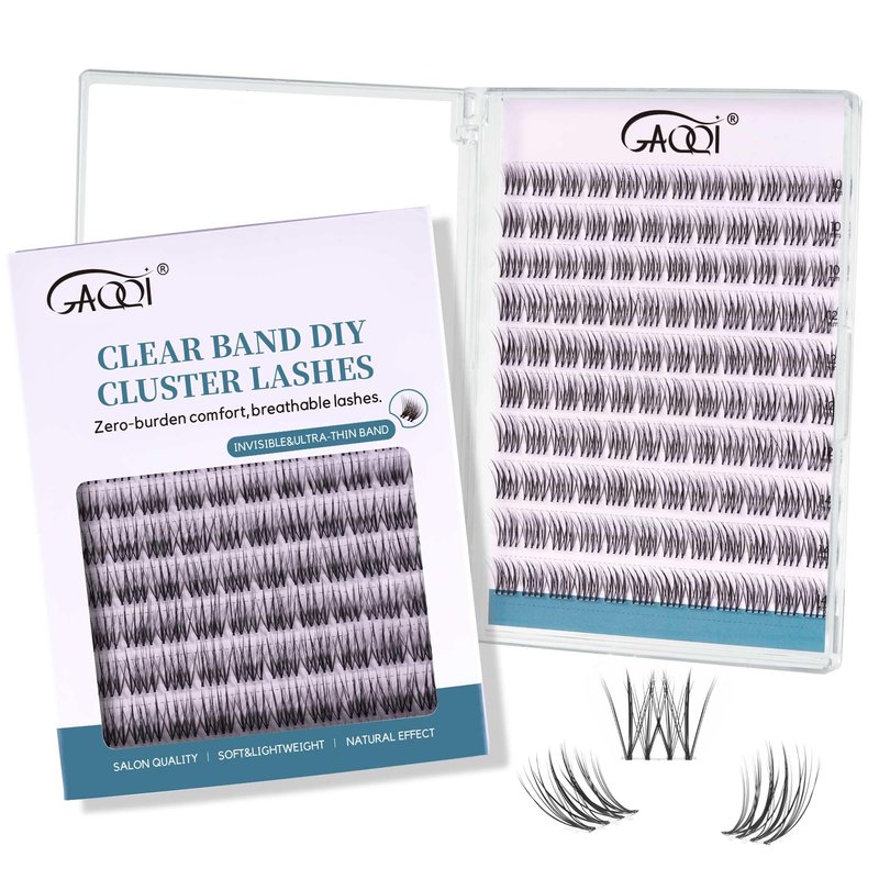 - ULTRA-THIN CLEAR BAND: GAQQI clear band lash clusters feature an ultra-thin, transparent band that blends seamlessly with your natural lashes for a more flawless look. With the super thin and soft invisible band, you will feel almost nothing when wearing them.