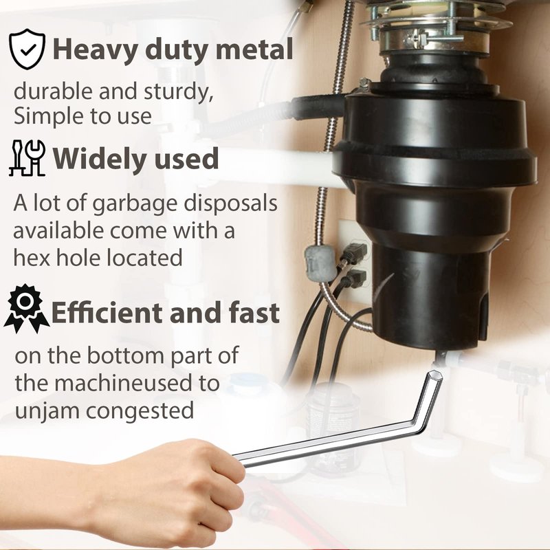- Garbage disposal wrench is made of heavy duty metal construction, very durable and sturdy, A lot of garbage disposals available come with a hex hole located on the bottom part of the machine, it can be used to unjam congested or blocked waste disposal