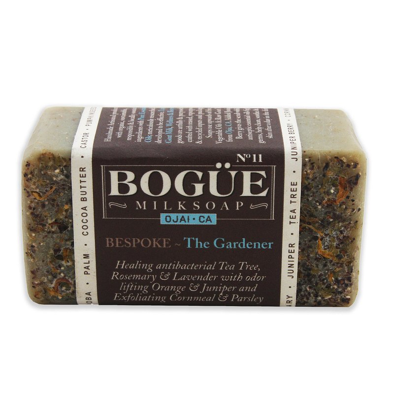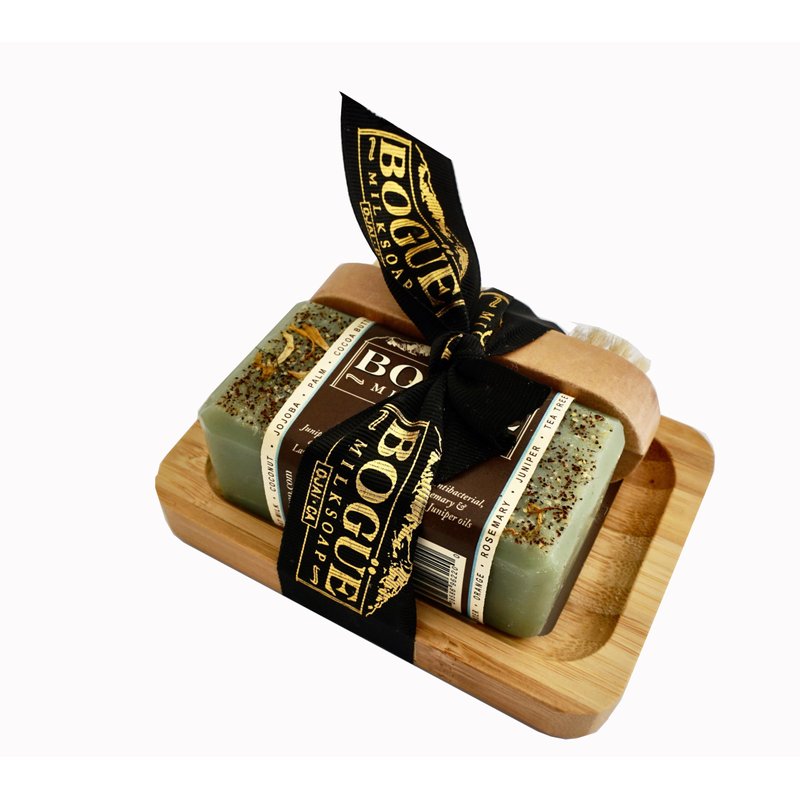 Gardener Goat Milk Soap GiftSet- BOGUE No.11 with Detoxifying Juniper Berry & Cornmeal Exfoliate, Remove Dirt & Grime. EO of Tea Tree, Healing Rosemary & Lavender, nail scrubber & soap dish