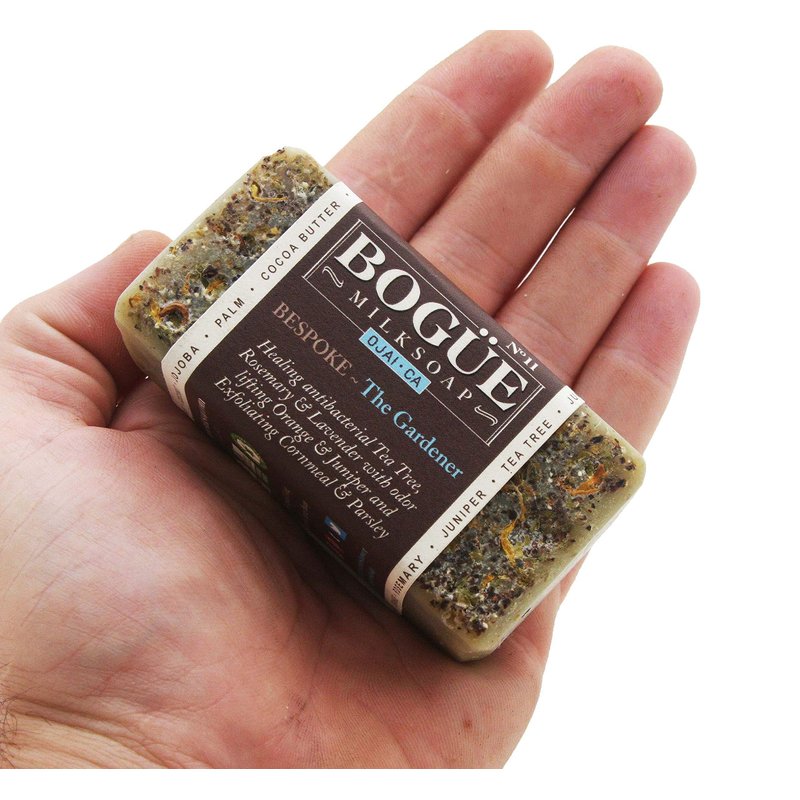 A Gardners Friend that will clean the dirt and grime off while healing and protecting the skin. Bogue Milk Soaps are all made with natural vegetable oils and goat milk, and use only pure essential oils, infused oils and herbs for scent and skin nourishment. There are no artificial additives, preservatives, dyes or fragrances, and unlike commercial soap, all the glycerin created in the making of soap, stays in the soap. Goat milk has long been known for its moisturizing qualities. It's a natural emollient that soothes and moisturizes your skin and together with pure vegetable oils, produces a creamy, luxurious lather not found in commercial soaps.