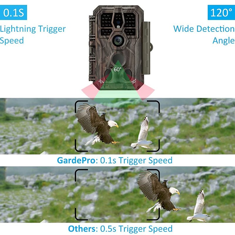 - Ultra-fast Motion Detection: Pre-activated technology for lightning 0.1s trigger speed, super-fast 0.5s recovery time, 90ft detection distance.