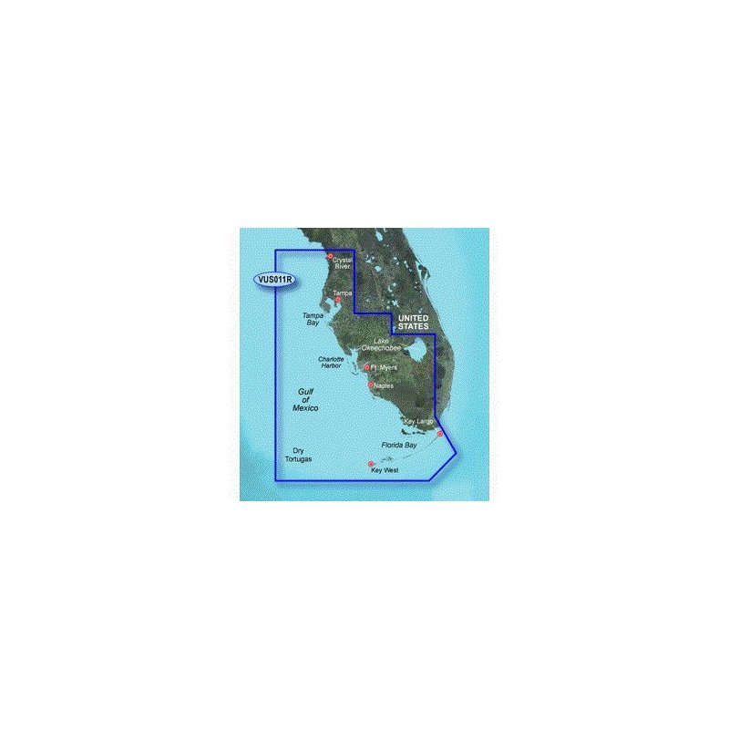 This chart is NOT compatible with GPSMAP 722sx, 7612xsv, 7610xsv, 922xs, Echomap Plus series or units with the latest update software/firmware. VUS011R Covers:Crystal River through Key Largo, including Tampa Bay, Ft. Myers, Lake Okeechobee, Florida Bay, Key West, and the Dry Tortugas