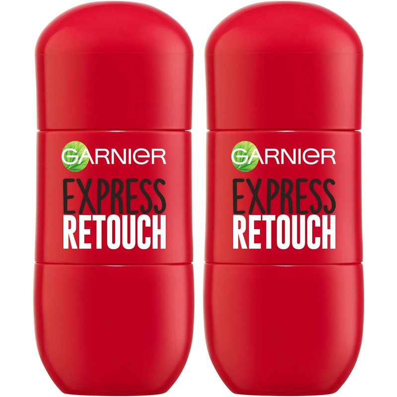 • Garnier Express Retouch allows you to instantly touch up your roots, anytime and anywhere- with up to 100 percent coverage of gray hairs
