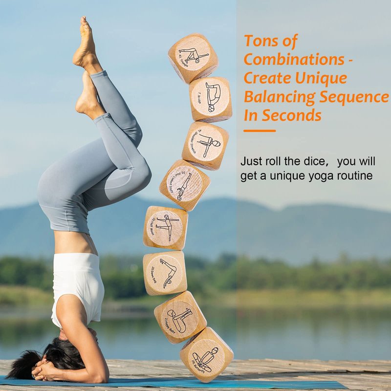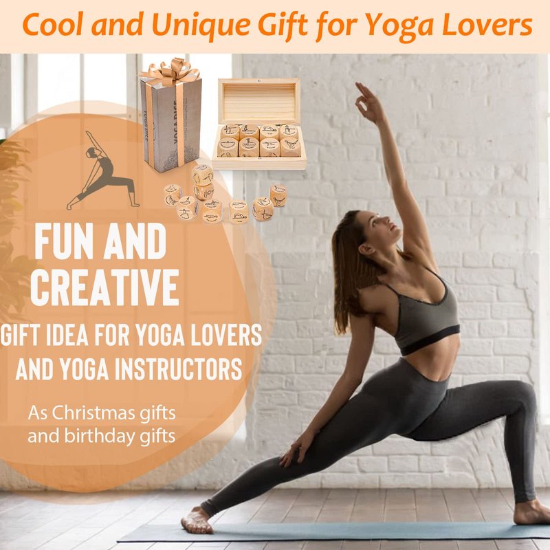- Are you seeking yoga stuff to add a little fun to your daily yoga workout, or as a gift for your yoga-loving friends? Here we are, this yoga dice fit the bill! If you're getting a little bored with your usual practice, this yoga kit helps pull you out of your funk. Using 8 yoga dice to create a unique workout routine every day helps get you in the mood to do yoga. Also, these yoga dice with wooden gift boxes are designed to be cool fitness gifts for women and yoga gifts for yoga instructors.