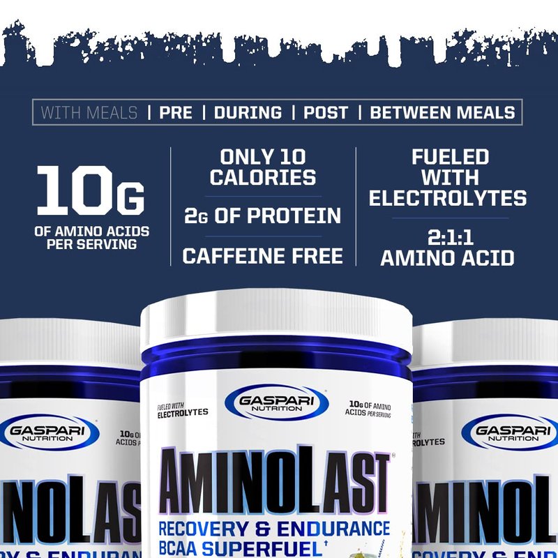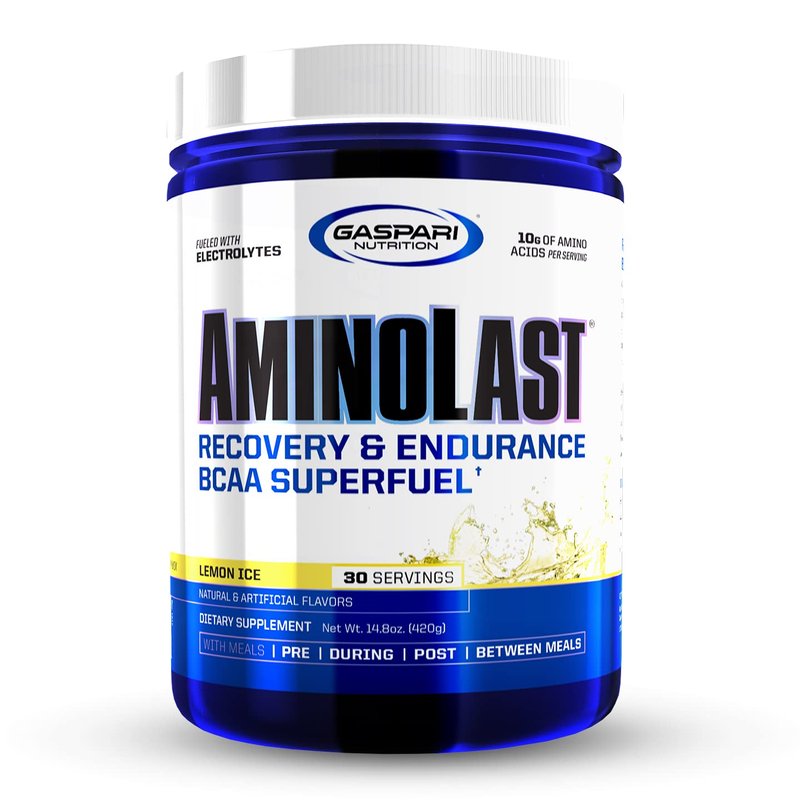 Gaspari Nutrition Aminolast, Recovery and Endurance BCAA Superfuel, 2:1:1 Amino Acid Ratio, Fueled with Electrolytes (30 Servings, Lemon Ice)