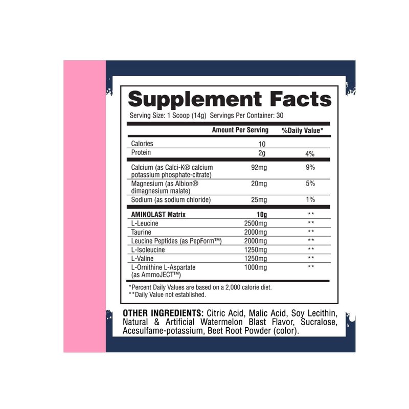 - Speeds recovery and reduces soreness^Provides 10g of potent amino acids^Loaded with electrolytes^Unleashes ammoject technology^Lasts 30 workouts