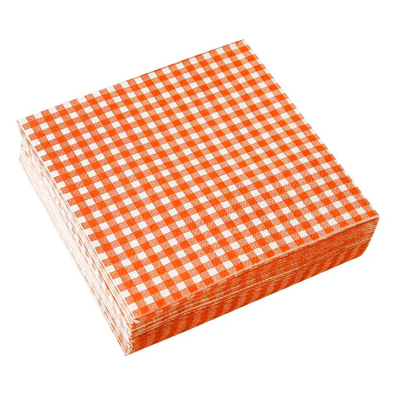 Gatherfun Disposable Paper Napkins 3-ply Orange and White Gingham Beverage Napkins for Dinner, Picnic, Birthday Party(6.5X6.5 in, 50-Pack)