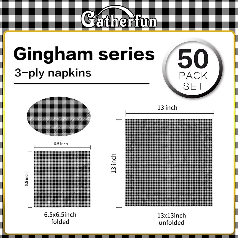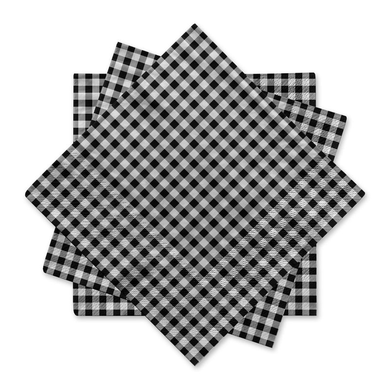 Gatherfun Disposable Paper Napkins Black and White Gingham for Dinner Picnic and Parties (Pack of 50)
