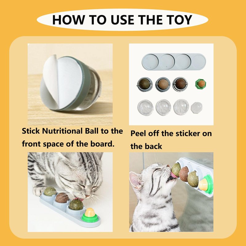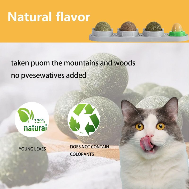 - 【Unique Design】The cat chew ball toy can be easily glued to the wall or other surfaces with good stickiness, and not easy to fall off when your kitten licks and plays. The catnip treat balls can be rotated 360 degree when licking