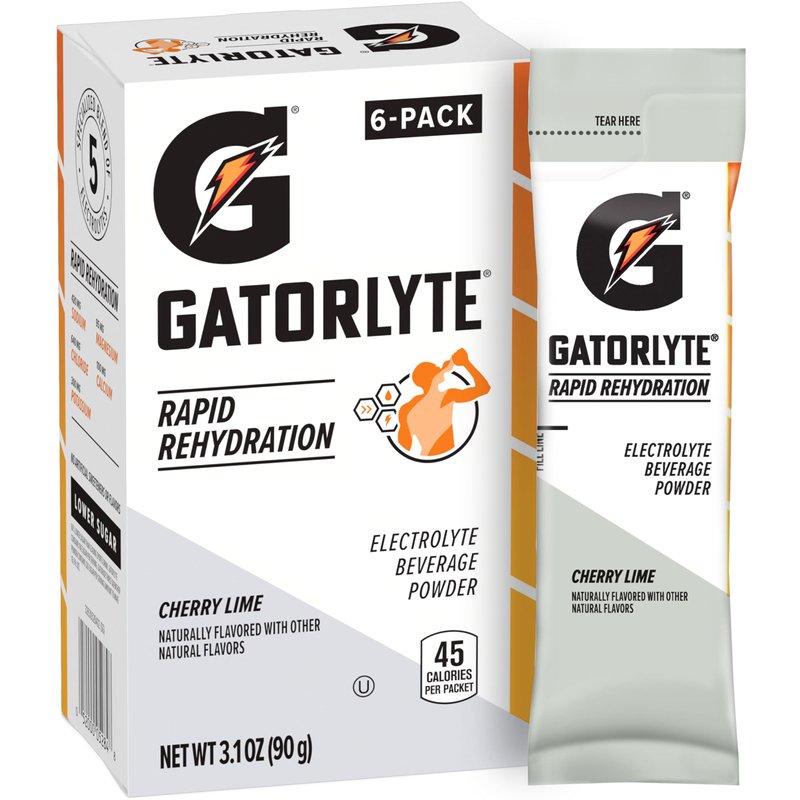 - Includes 6 Single Serve Powder Sticks of Gatorade Gatorlyte Rapid Rehydration Powder, each stick makes 16.9 (500ml) of Gatorlyte, Cherry Lime flavor