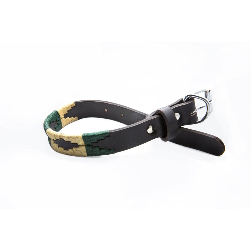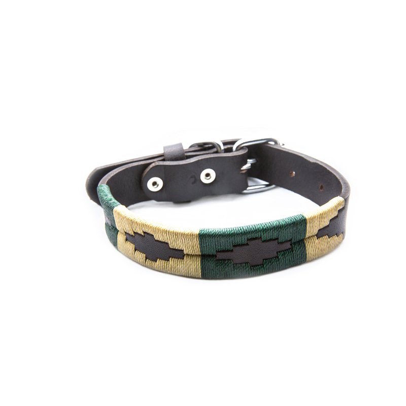 The 'Palm Desert' leather dog collar is a subtle design in our dog accessories collection. The collar has been stitched with green and cream wax threads.