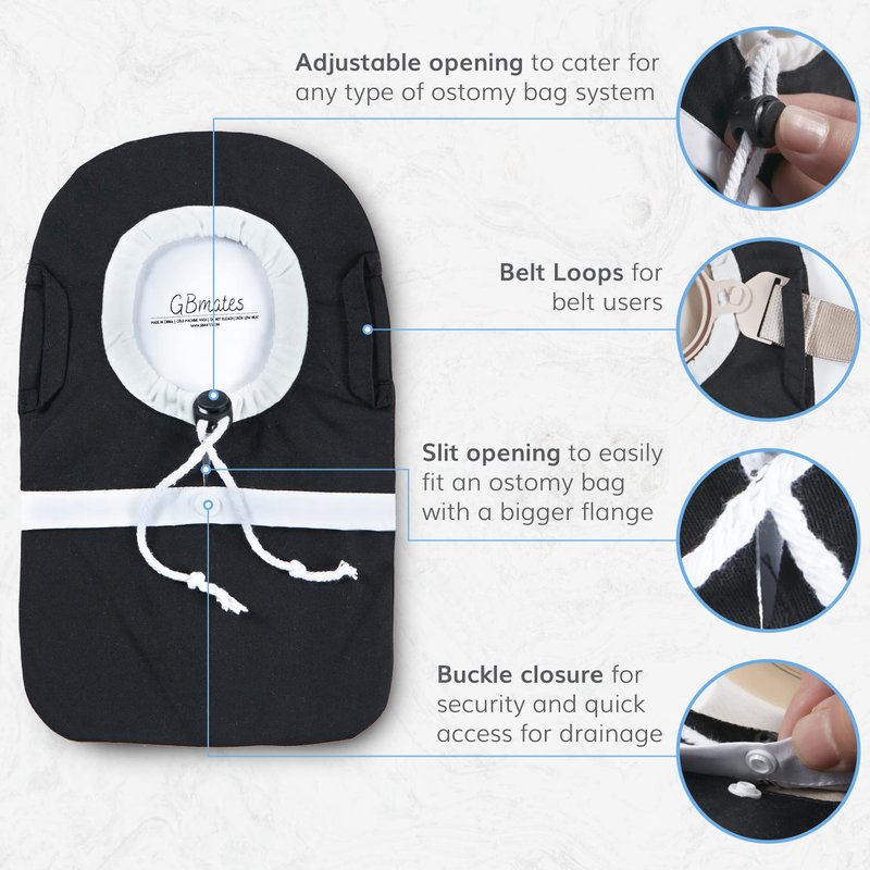 - Must-Have Accessory For Your Ostomy Bag: With an adjustable opening, our colostomy protector will fully enclose any ostomy pouch, urostomy, or ileostomy bag, to provide discretion under clothing. Customize the tightness with the adjustable buckle