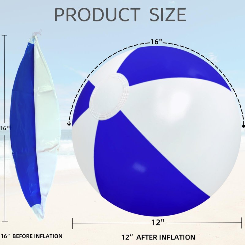 - Easy to use: Beach balls 16 inches before inflation, 12 inches after inflation. Perfect inflatable beach balls for the best toy for the beach, sand & water play or for the swimming pool.