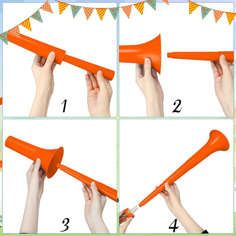 The collapsible design makes them easy to store and transport, it can be folded into 9 inch long, so you can take the fun with you wherever you go. With their bright orange color, these horns are not only functional but also eye-catching. Grab a pair and get ready to make some noise!