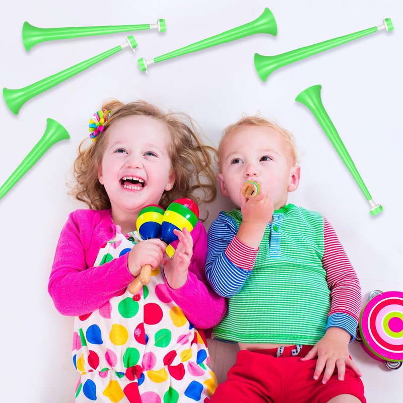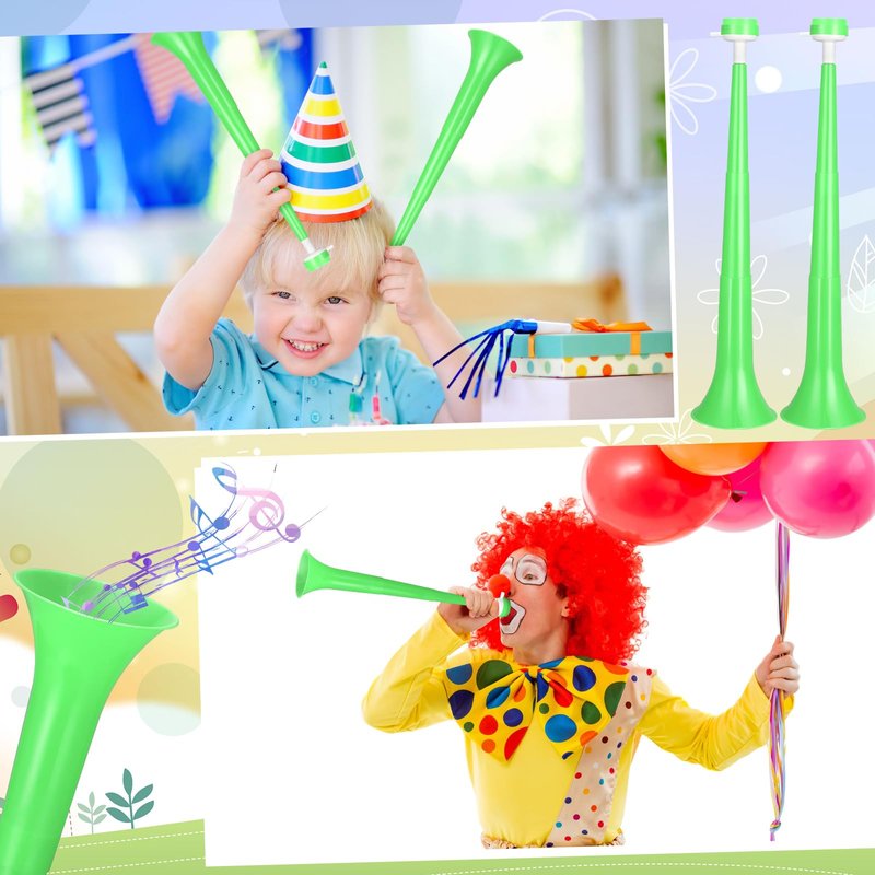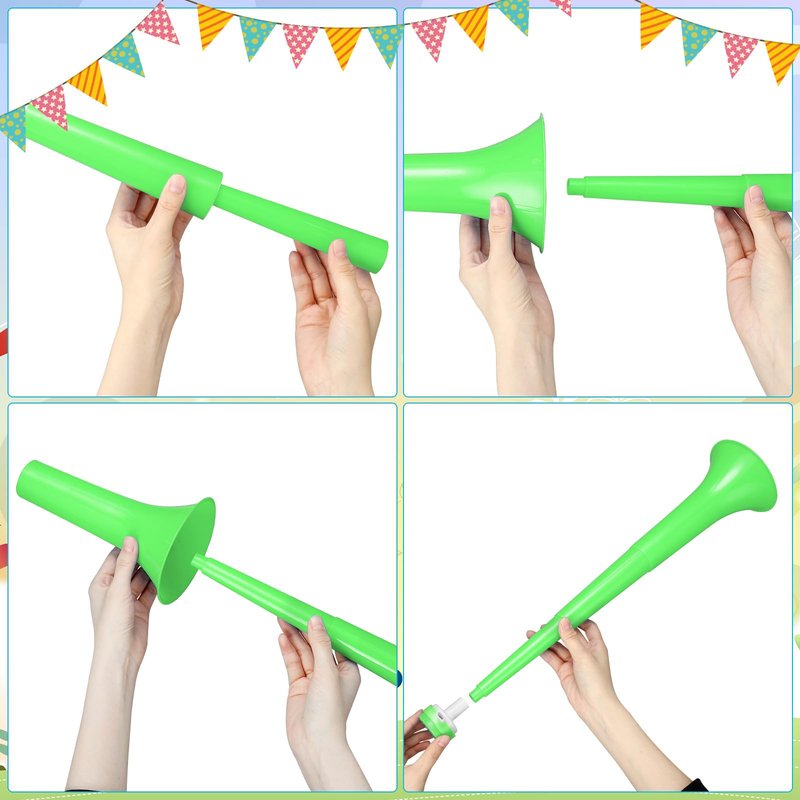 GCQJOQ 4 Pcs Stadium Horn 21 Inch Vuvuzela Plastic Collapsible Cheering Trumpets for Sporting Events Football Carnival St Patricks Day Party Supplies, Green