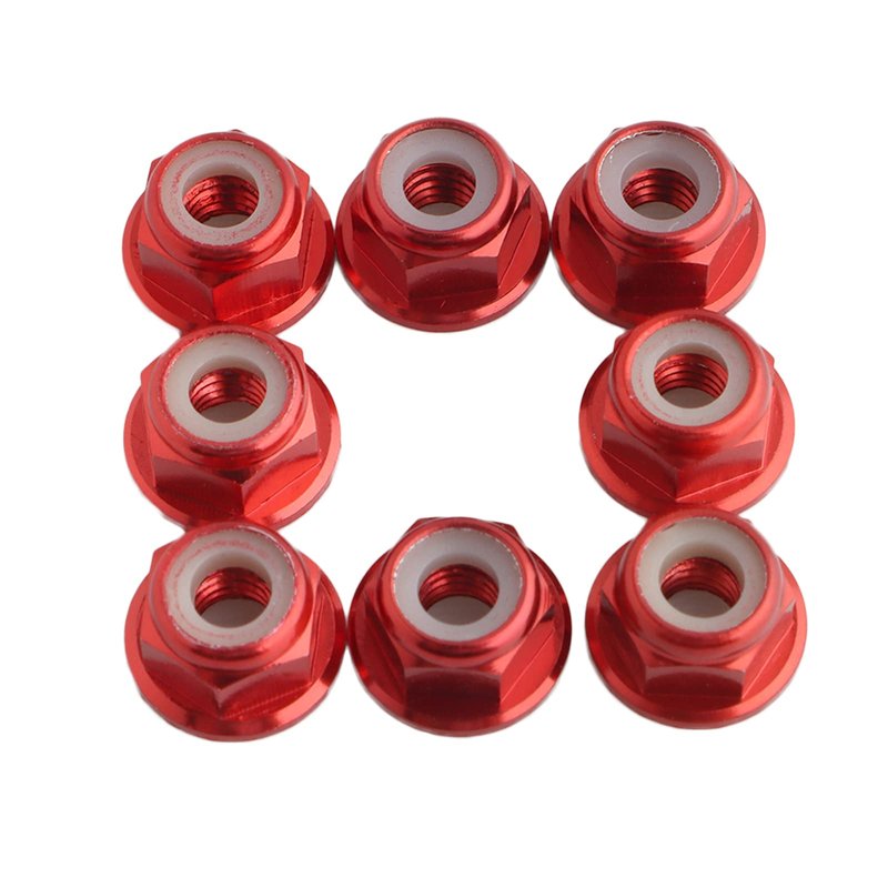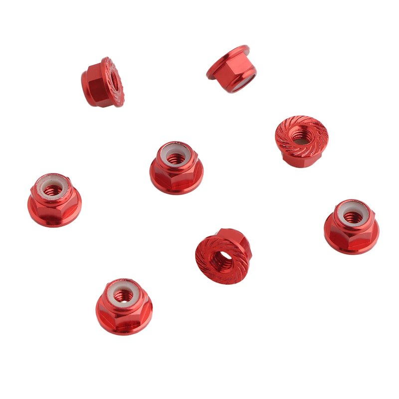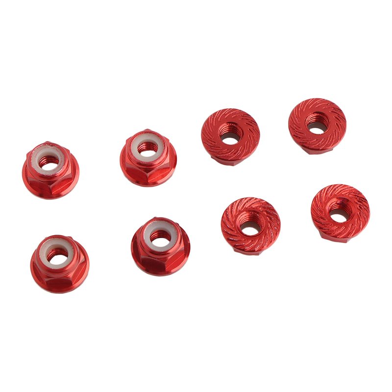 GDOOL 8PCS Flange M4 Lock Nuts Serrated Nylon Self-Tightening Aluminum M4 Wheel Hardware for Axial HPI TLR ECX Model RC Car Vehicles Upgraded Replacement Parts (Red)
