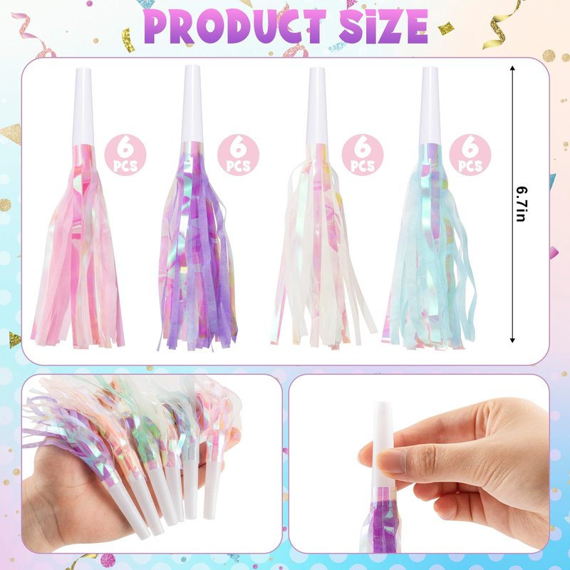 - PACKAGE INCLUSION : You will receive 24 pcs mermaid themed party blowers, including 4 in pink, purple, white and blue each. These noise makers are good for birthday parties, celebrations, and more
