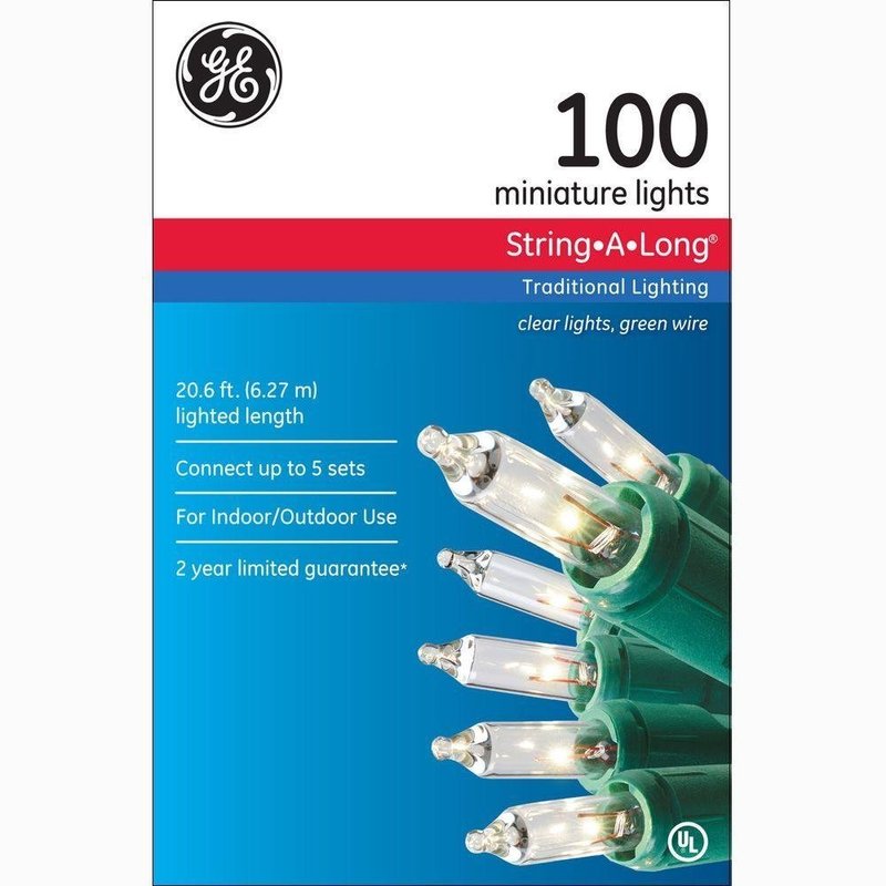 GE 100 Count Outdoor Constant On Clear Miniature Holiday String Lights on Green Wire Indoor Outdoor 20.6 Foot