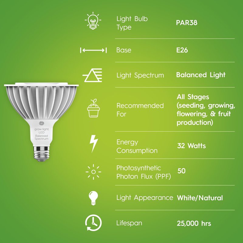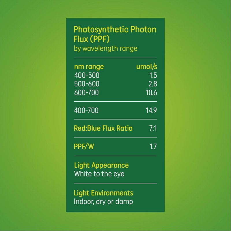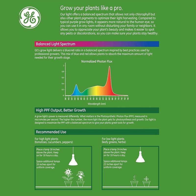 - Natural Plant Grow Light: Show off your outdoor or indoor garden without purple or reddish lighting; GE grow light bulbs provide a pleasing, natural light temperature that integrates well with any decorative aesthetic