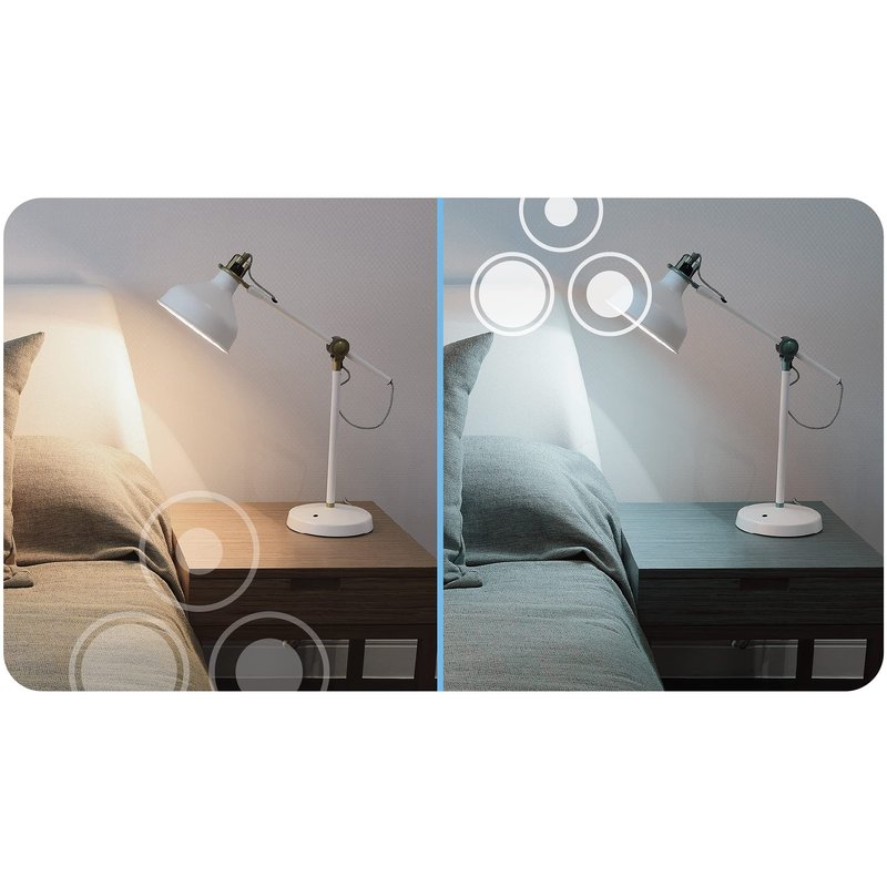 - LED light bulbs that adjust from cozy to energetic hues: the LED+ color changing light bulbs can change from soft white to daylight with a simple flip of a switch, matching your lighting needs throughout the day.
