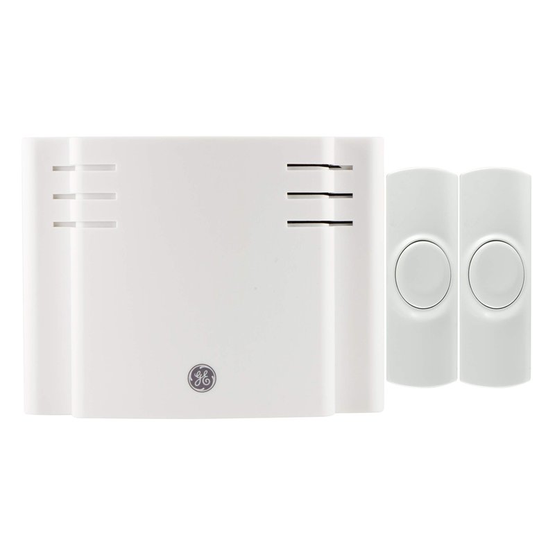 GE Wireless Doorbell Kit, Battery Operated Receiver, 2 Push Buttons Door Bell, 8 Melodies Doorbell Chime, 4 Volume Levels, Classroom Doorbell, 150 Ft Range, White, 19297