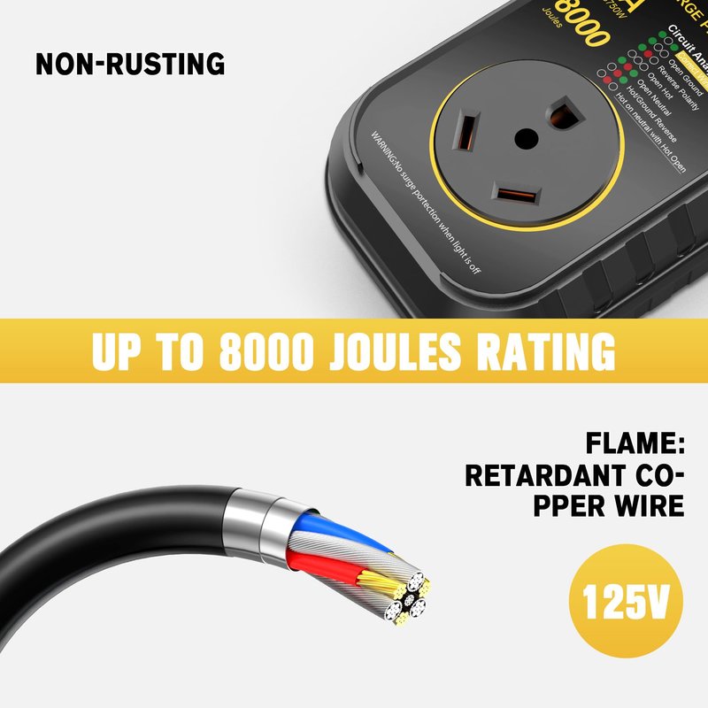 - Portable RV Surge Protector: GEARGO RV Surge Protector are designed to identifies faulty power and offers 8000 Joules of surge voltage protection. The adapter circuit analysis surge guard instrument is used to detect the connection error of the electric system with a grounded safety feature for your electronic equipment.