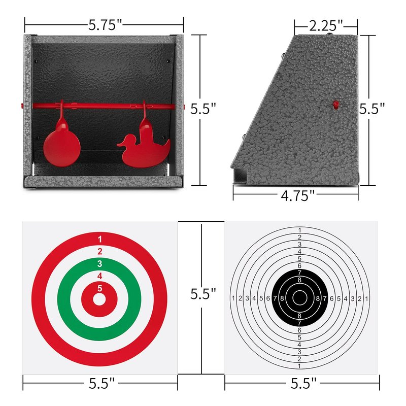 - 🎯 CONVENIENT TO USE: Overall size:5.75"(W) X 5.5"(H) X 4.75"(D), Weight:1.6lb. GearOZ airsoft target offers a compact and portable solution for your shooting practice. It's lightweight and easy to carry/set up wherever you go. You can quickly assemble the pellet trap in approximately 10 seconds, ensuring that you can start your shooting practice without any delays.