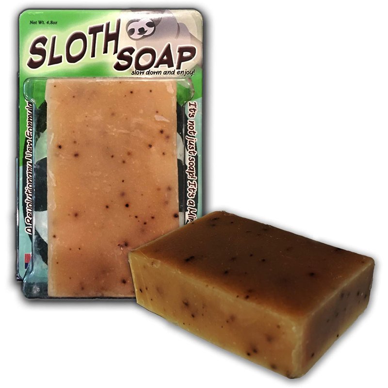 In a nonstop, hustle and bustle world, we can all take a very important lesson from the sloth. They’re not out to bother anybody, and they firmly believe in an indulgent level of relaxation that we all fantasize about between studying, carpooling, cooking, cleaning, rushing to appointments, taking care of our homes and families…and, well, every other daily activity known to man. Sloth Soap is a little slice of three-toed paradise, packed into a scrumptious-smelling, coffee-scented bath bar.