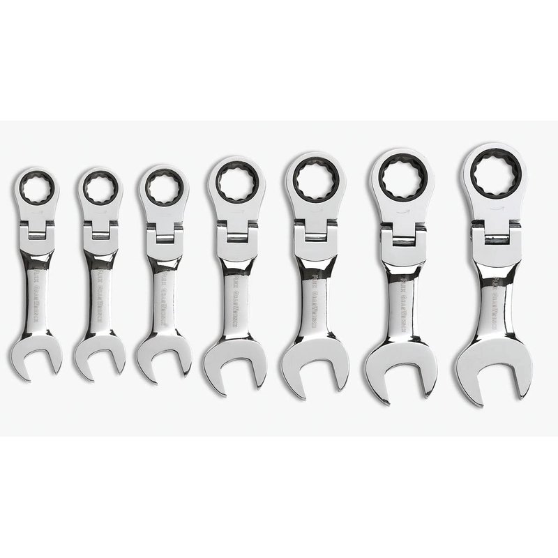 GEARWRENCH 7 Piece 72-Tooth 12 Point Stubby Flex Head Ratcheting Combination SAE Wrench Set | 9570