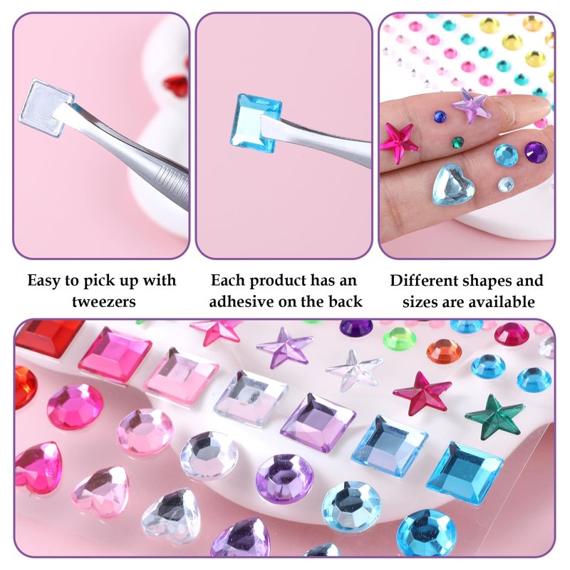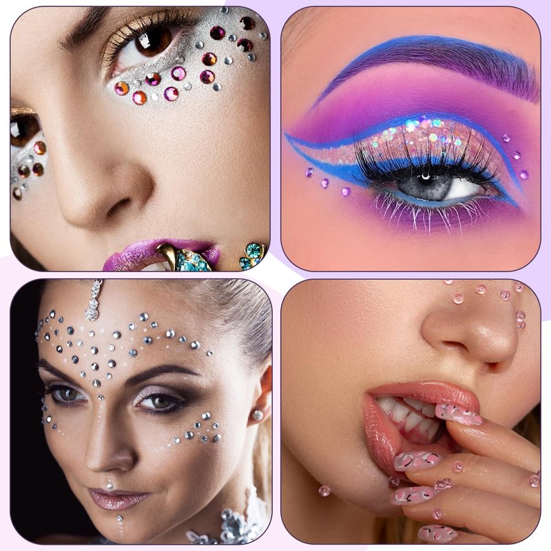 - 【Easy to Use】After opening the package of our rainbow face gems, just clean your hands and skin, remove dust, cosmetic lotion, and oil, tear off the pattern, and then stick it. It is a good choice to use these self-adhesive rhinestones for facial and body makeup, DIY crafts home decoration, etc.