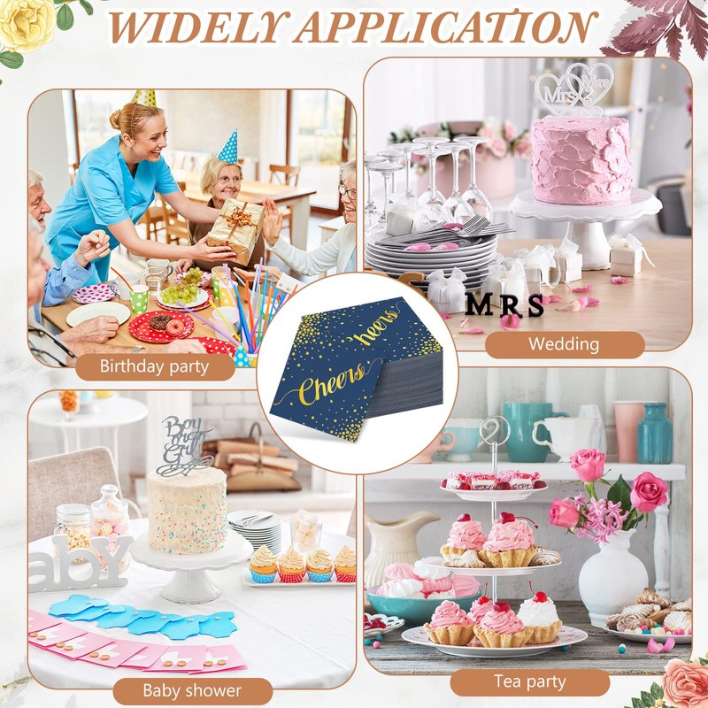 Geelin 180 Pieces Cheers Napkins Gold Napkins Cocktail Napkins for Wedding Reception Beverage Paper Napkins Disposable Bar Napkins for Engagement Party Graduation Baby Shower, 5 x 5 Inch (Navy Blue)