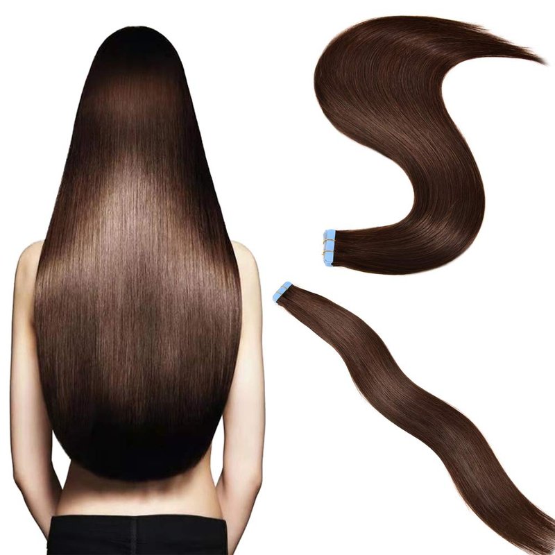 GEELOOK Tape in Hair Extensions Human Hair 14 inch Skin Weft Tape in Straight Thick Natural Hair Extensions with 12 Pieces Replacement Tape 20pcs 50g Darkest Brown #2