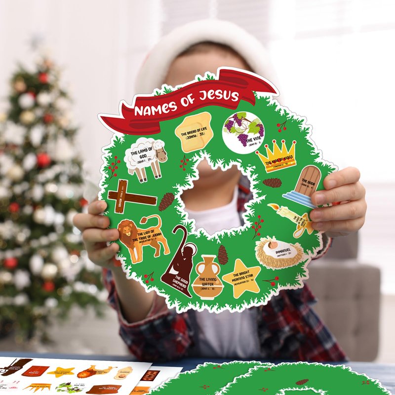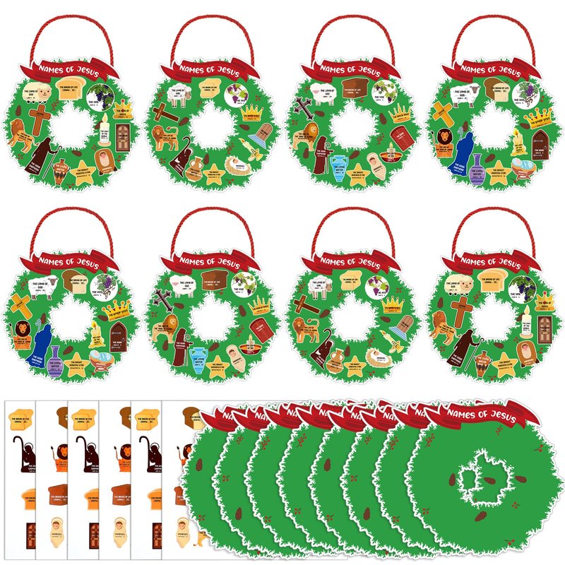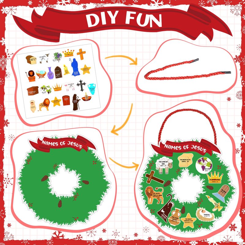 Geetery 24 Pack Sunday School Religious Crafts for Kids Names of Jesus Wreath Craft Kit DIY Hanging Christmas Ornament Craft Kit Christmas Crafts for Kids Paper Craft Kits Fun Home Activities