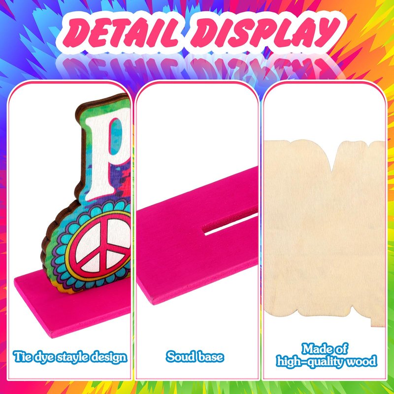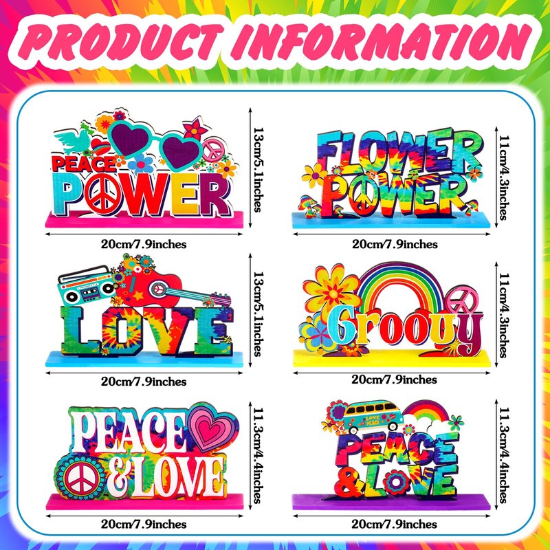 Geetery 6 Pcs 60's Party Supplies Hippie Party Supplies 60s Hippie Theme Groovy Party Wooden Centerpieces for Table Topper Decorations for Birthday Shower Party Supplies(60's)