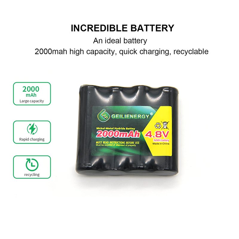 GEILIENERGY NiMH Receiver RX Battery with Hitec Connectors 4.8V 2000mAh High Capacity Rechargeable Battery Pack for RC Receivers, RC Aircrafts and More
