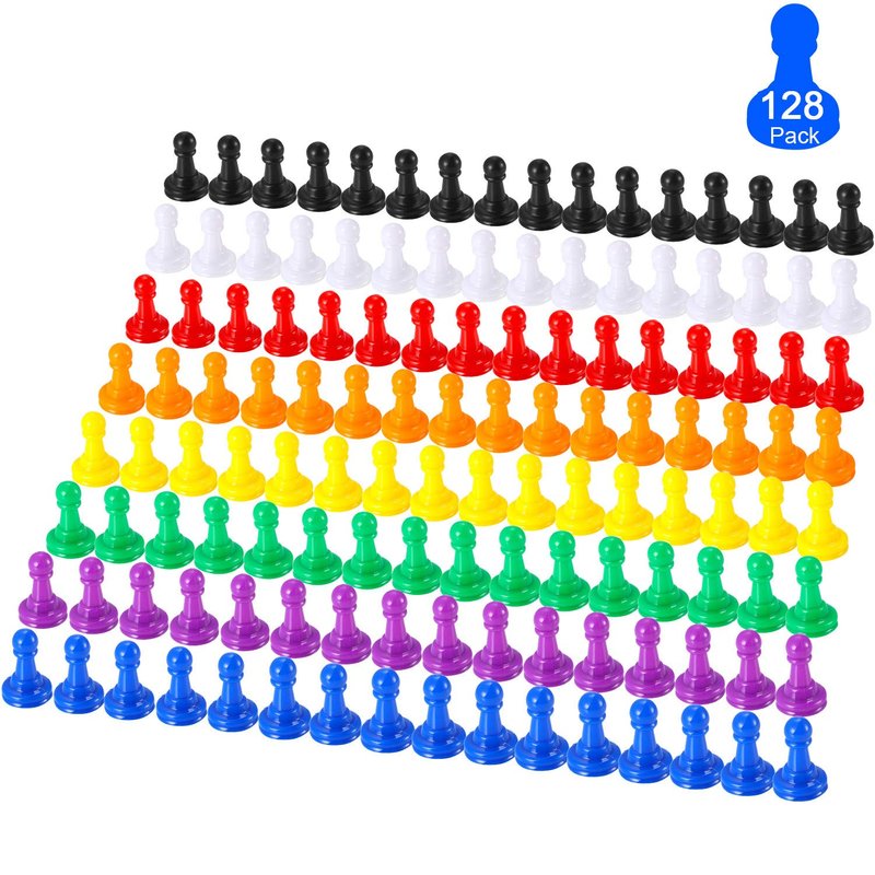 - Package content: the package includes 128 pieces of pawn pieces in 8 colors and each color has 16 pawn pieces, which is enough quantity for you to use; You never worry again about misplacing dice or not having enough game pieces when you can create your own games