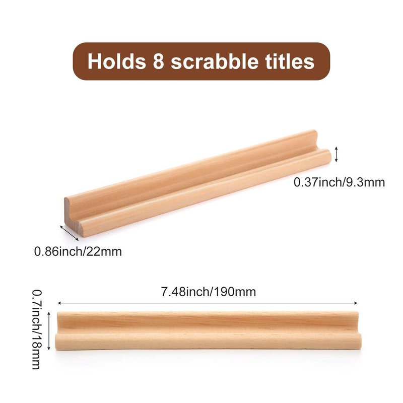 16 Pieces wooden tile holders replacement rack letter racks trays for crafts and game stands Function: Wooden racks can be applied to play letter game and for craft projects, a fun way for students to learn how to spell. Specifications: Size: 6.75 x 1 x 0.66 inch/ 17 x 2.5 x 1.7 cm (holds up to 9 letter tiles) Material: quality wood (processed) Package include: 16 x Wood rack Note: This wooden rack does not hold dominoes. Suitable for wooden tiles thickness between 0.157 inches -0.236 inch Please read and check the size before purchasing.