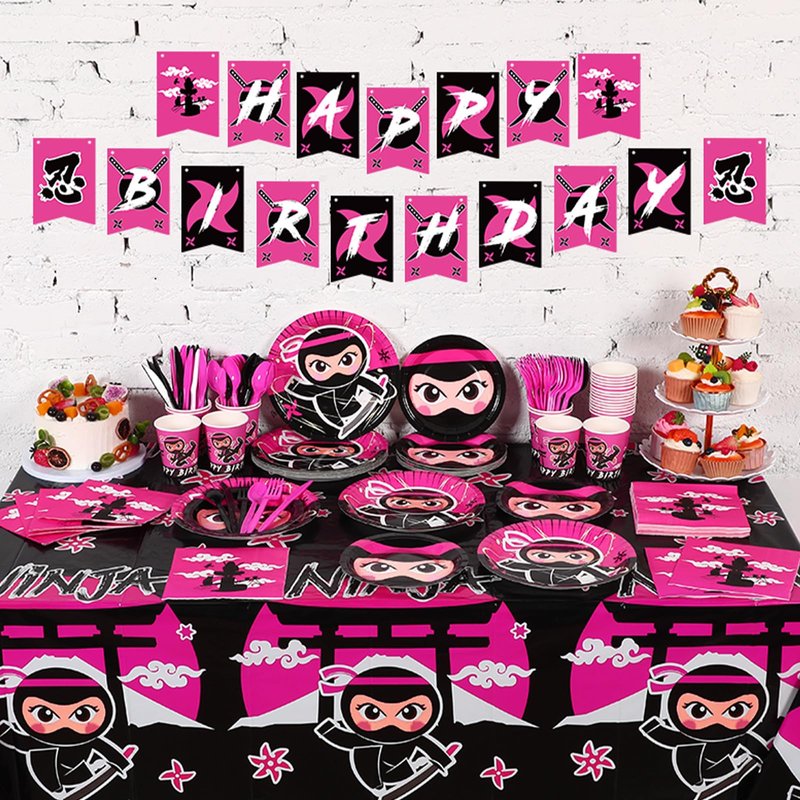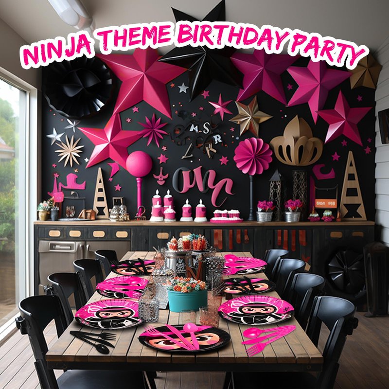 - Ninja Theme Design: this set of birthday party supplies is well designed with ninja elements, in pink on a black background, delicate and eye catching, which can easily create a joyful and dynamic party atmosphere