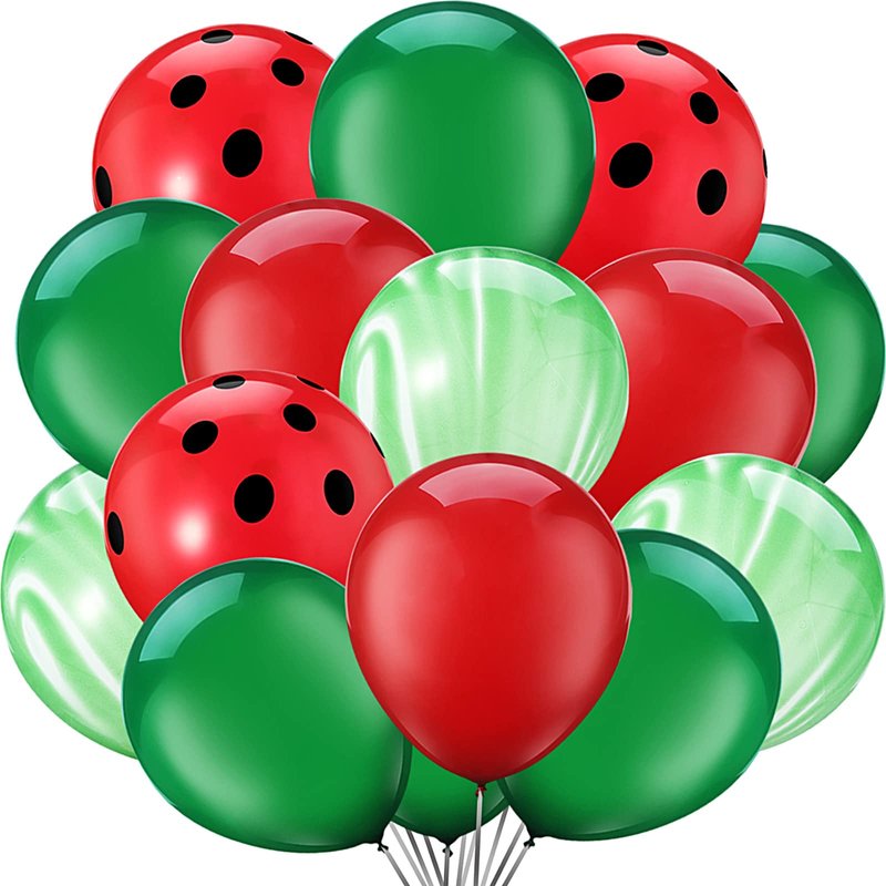 - Package Includes: 48 pieces 10 inches watermelon balloons, 4 colors ( red, dark green, green agate, red polka dot), 12 pieces per color