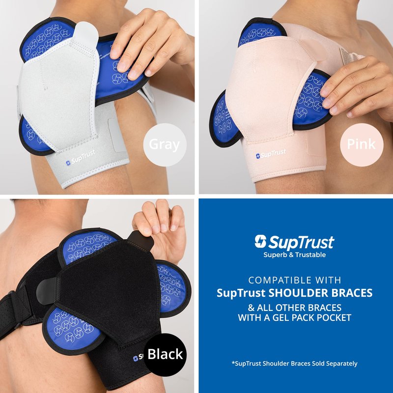 - 🎊Compatible with Suptrust Shoulder Braces: This reusable gel ice pack fits perfectly inside the Suptrust shoulder support brace, providing stability to the shoulder while helping it heal through hot and cold therapy. The shoulder brace is sold separately.