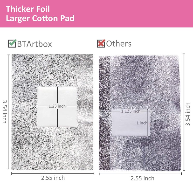 - Large cotton size: sized 1.23 x 1.23 inch fits all your finger & toenails.The foils are thick and long to fit on toes and fingers and easy to wrap. They hold the polish remover well to get a good soak, getting the gel polish off in no time