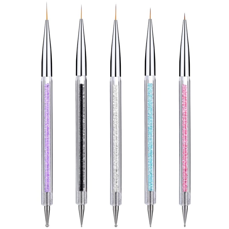 5 Pcs Nail Art Liner Brushes Dual-ended Nail Polish Decorating Brush Including Fine Striping Brush and Dotting Pen (5,7,9,11,13 mm)