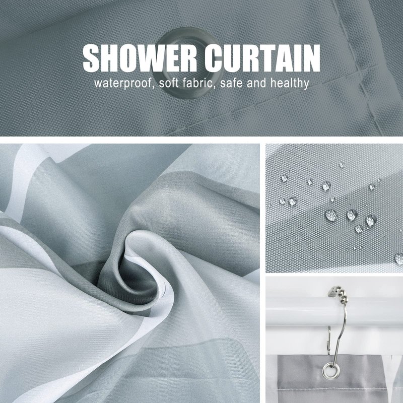 Gelbchu Grey Fabric Shower Curtain, Waterproof Design and Polyester, Quick-Drying, Weighted Hem, Shower Curtains Set for Bathroom W 72 x H 72, Durable and Washable with 12 Hooks