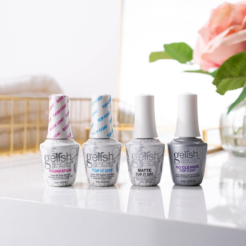 Dsicover All The Best Mini Essentials Kit by Gelish for all your gel nail polish manicure needs! This essentials pack of 4 gel polish will give you the ideal manicure to last up to 3 weeks! This kit has the essentials needed for a Gelish salon manicure with your choice of top coat with Foundation Base Coat, Top It Off Top Coat, Matte Top Coat and No Cleanse Top Coat. Top It Off gives you a high shine finish while Matte Top Coat gives a matte base finish. Leaving No Cleanse Top Coat giving you a shiny finish with no surface cleanse needed. Never miss an opportunity to have a secure Gelish manicure with our best selling essentials all in one kit by Gelish with options!