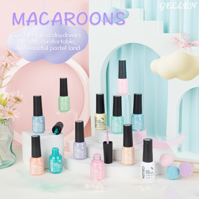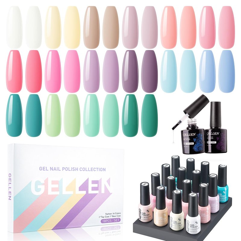 Gellen Gel Nail Polish, 16 Colors Gel Nail Polish Set, Soak off Uv Gel Polish Set, Pastel Colors U V Gel Polish Nails Kit with Gel Top Coat and Gel Base Coat, For Gift
