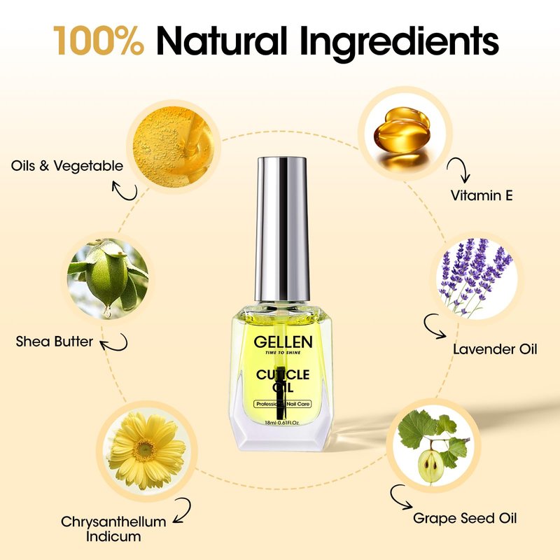 - Naturally Moisturize Protect Nails: Gellen cuticle oil for nails is made from natural plant essential oils and grape seed oil, which is cruelty-free, paraben-free, and vegan, providing nourishment and hydration for your nails and giving them a wonderful shine. When using it frequently, say goodbye to hangnail, brittle nails, and dry & cracked skin, but get a smooth nail surface, healthy cuticle, and strong nails.